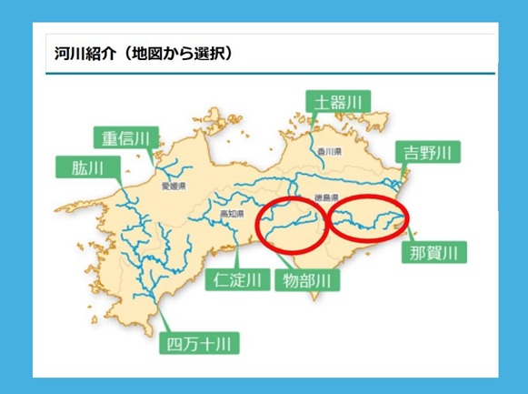 【参考】高知県・物部川と徳島県・那賀川の位置